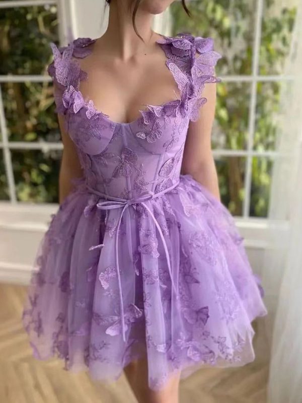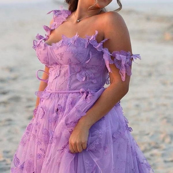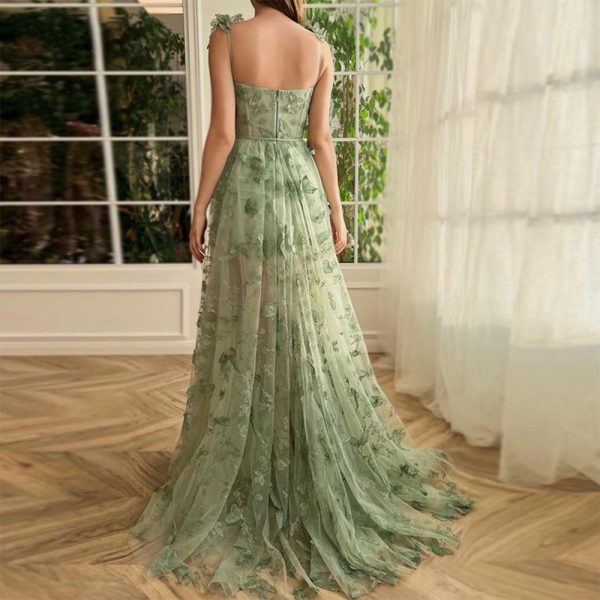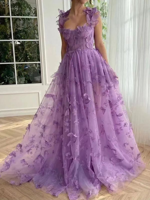 Aesthetic 3D Crochet Butterly Embroidered Tulle Prom Dress