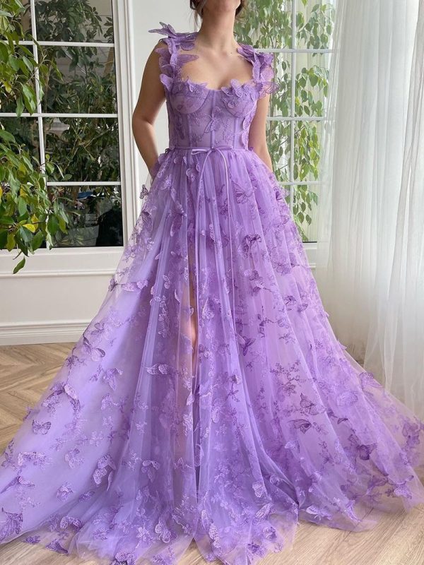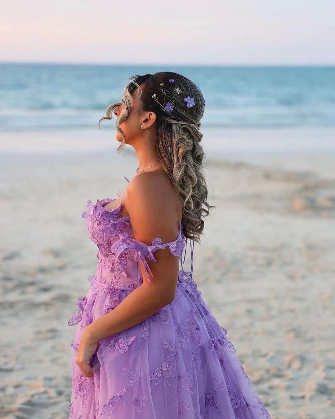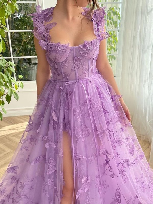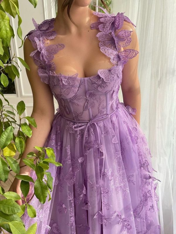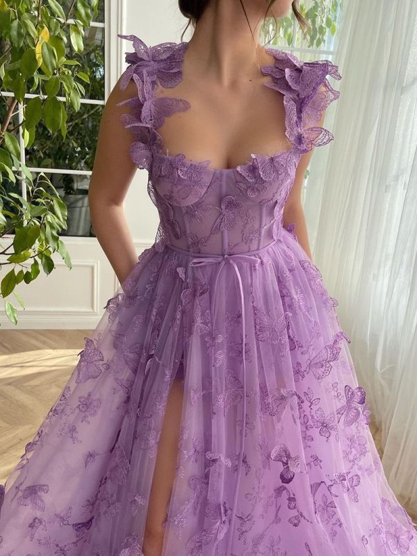 / Aesthetic 3D Crochet Butterly Embroidered Tulle Prom Dress
