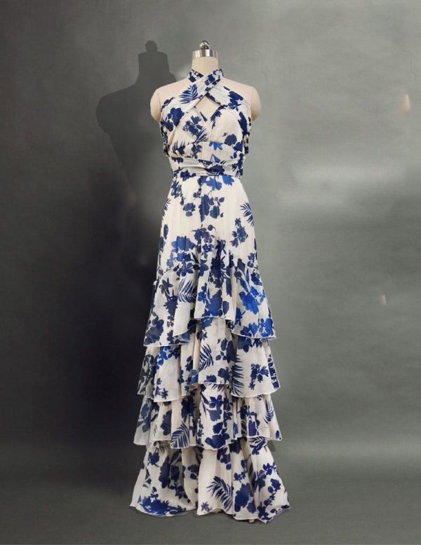 Ditsy Floral Prints Ruffle Edge Tiered Long Sleeve Boho Dress