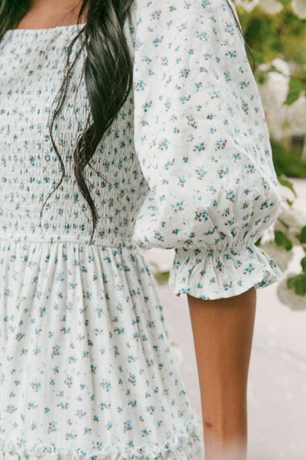 Ditsy Micro Floral Smocked Bodice Ruffle Midi Dress Puff Sleeve quantity