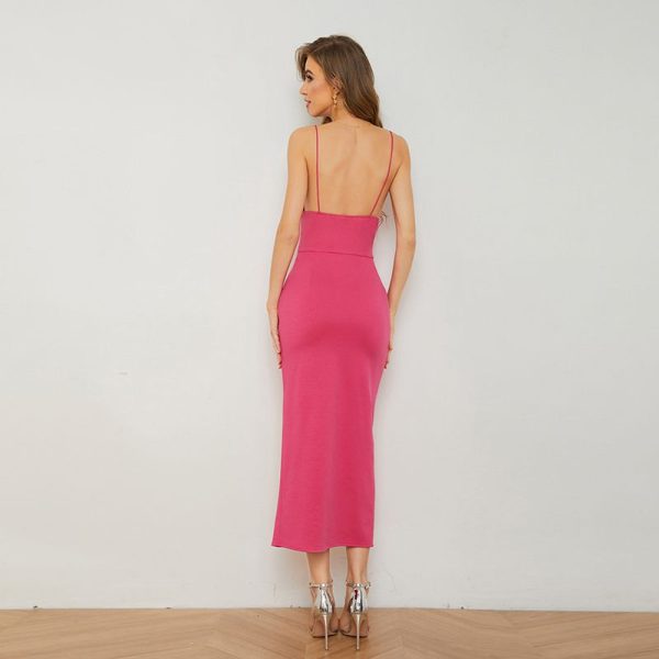Spaghetti Strap V-neckline Maxi Thigh Slit Long Dress with Wide Waistband quantity