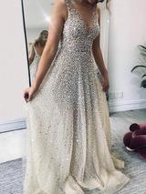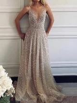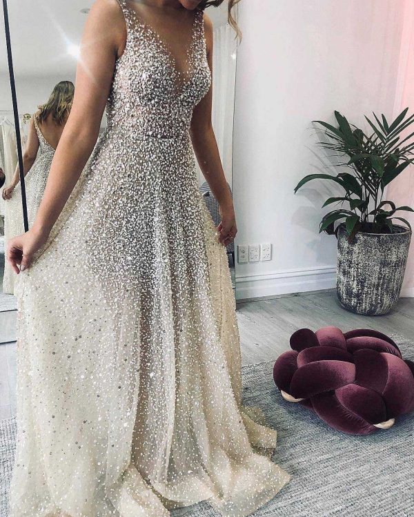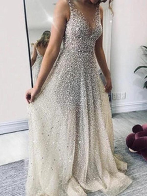 / Sparklely Formal Long Silver Sequin Gown Maxi Dresses