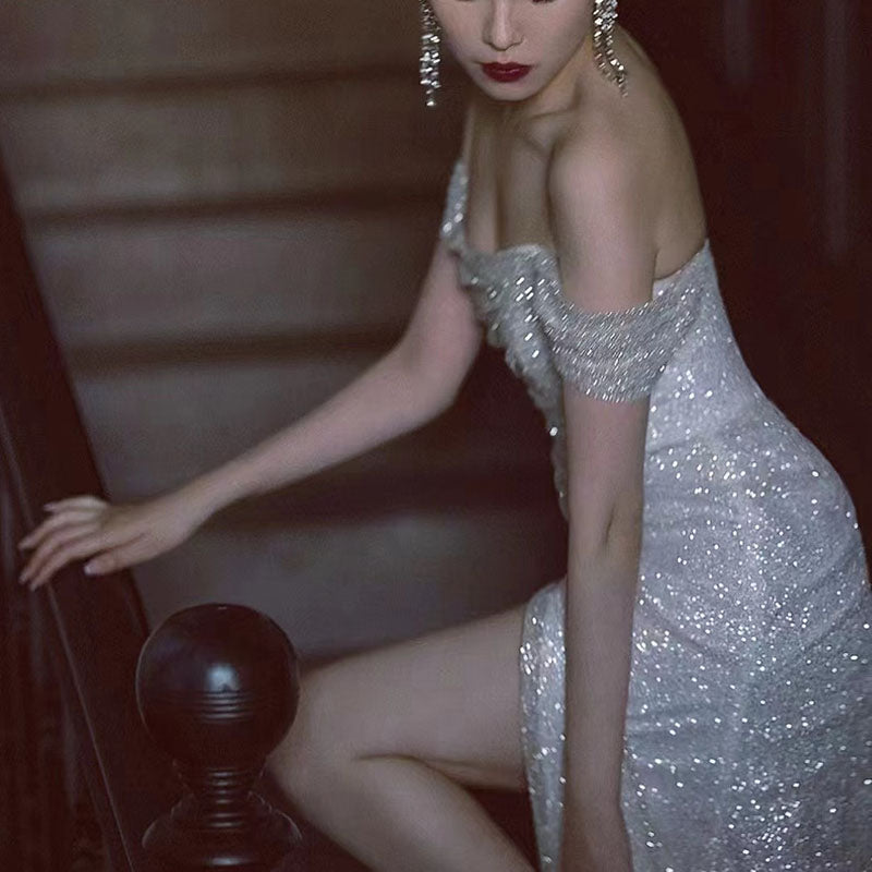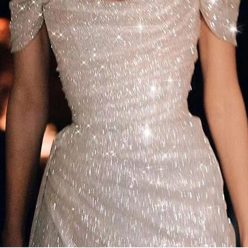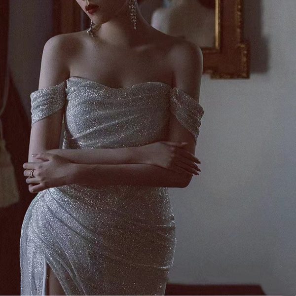 Sparkly Off Shoulder Ruched Midi Dress With Thigh Split quantity