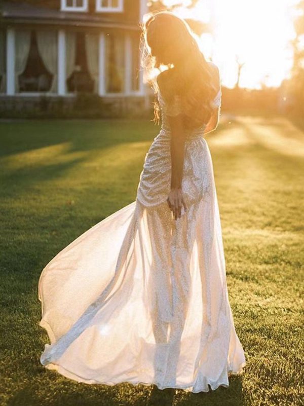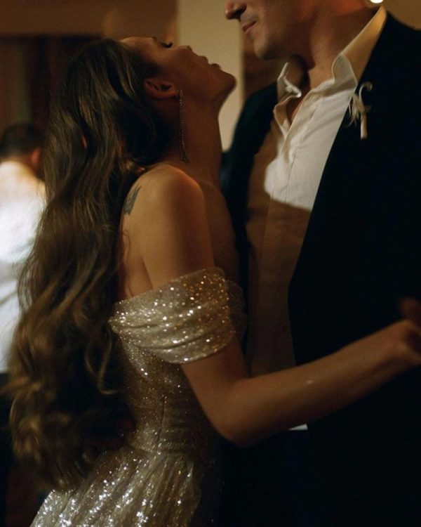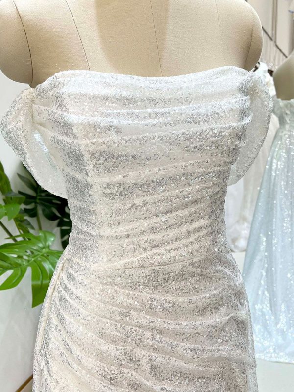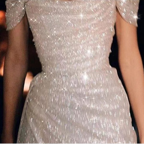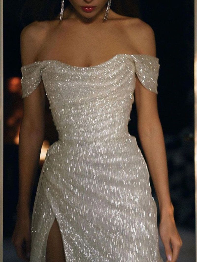 Sparkly Off Shoulder Ruched Midi Dress With Thigh Split